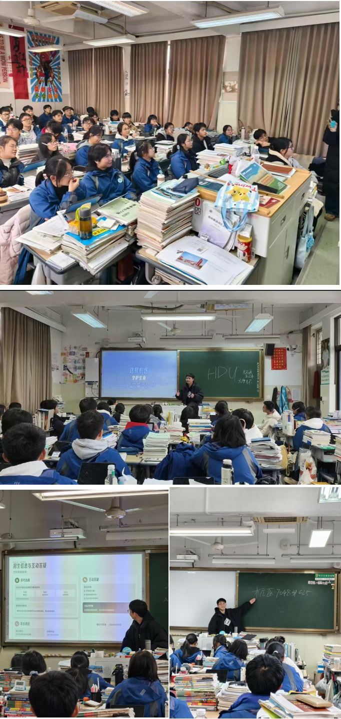 随后,宣传团队走进部分高三班级开展专场宣讲。成员们结合自身学习经历,详细解读临床医学等热门专业的培养模式、就业方向,以及学院在软硬件设施、师资力量、科研平台等方面的核心优势。针对 “学医累不累”“就业前景如何”“女生适合学医吗” 等同学们普遍关心的问题,宣讲团成员逐一耐心解答,为学子们的升学规划提供清晰参考,消融困惑已久的疑虑,现场互动频频、掌声不断。