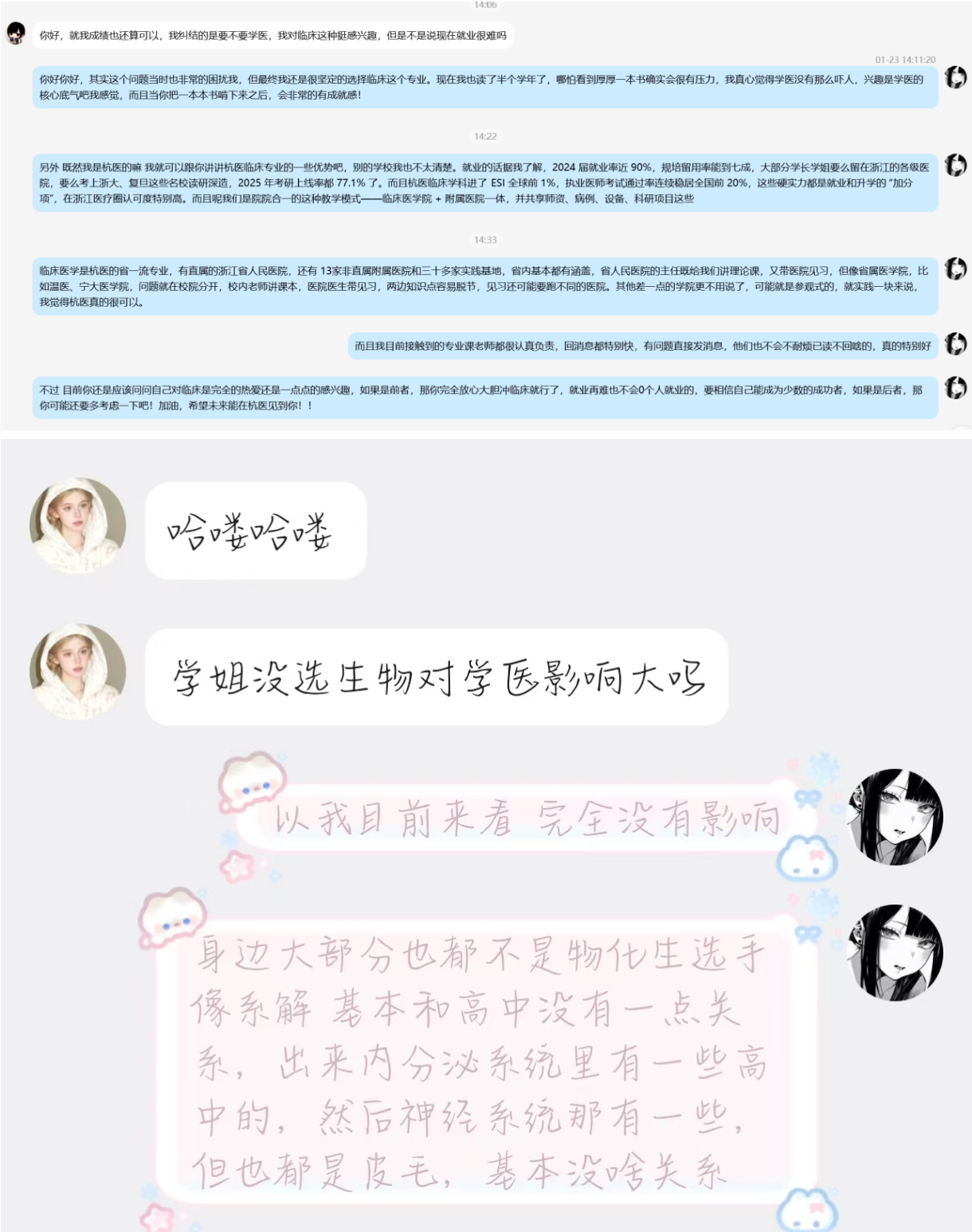 为延续宣讲效果,搭建长效沟通桥梁,活动结束后,宣传团邀请有兴趣的学弟学妹加入专属QQ咨询群。针对专业细节、录取政策、备考建议等疑问,学长学姐们以过来人的经验在线上逐一细致回复,分享真实的校园学习生活,消除大家的升学困惑。这种“线上+线下”联动模式,让招生宣传更具温度,为怀揣医学梦想的学子提供持续的指引与帮助,为医学传承的星星之火保驾护航。